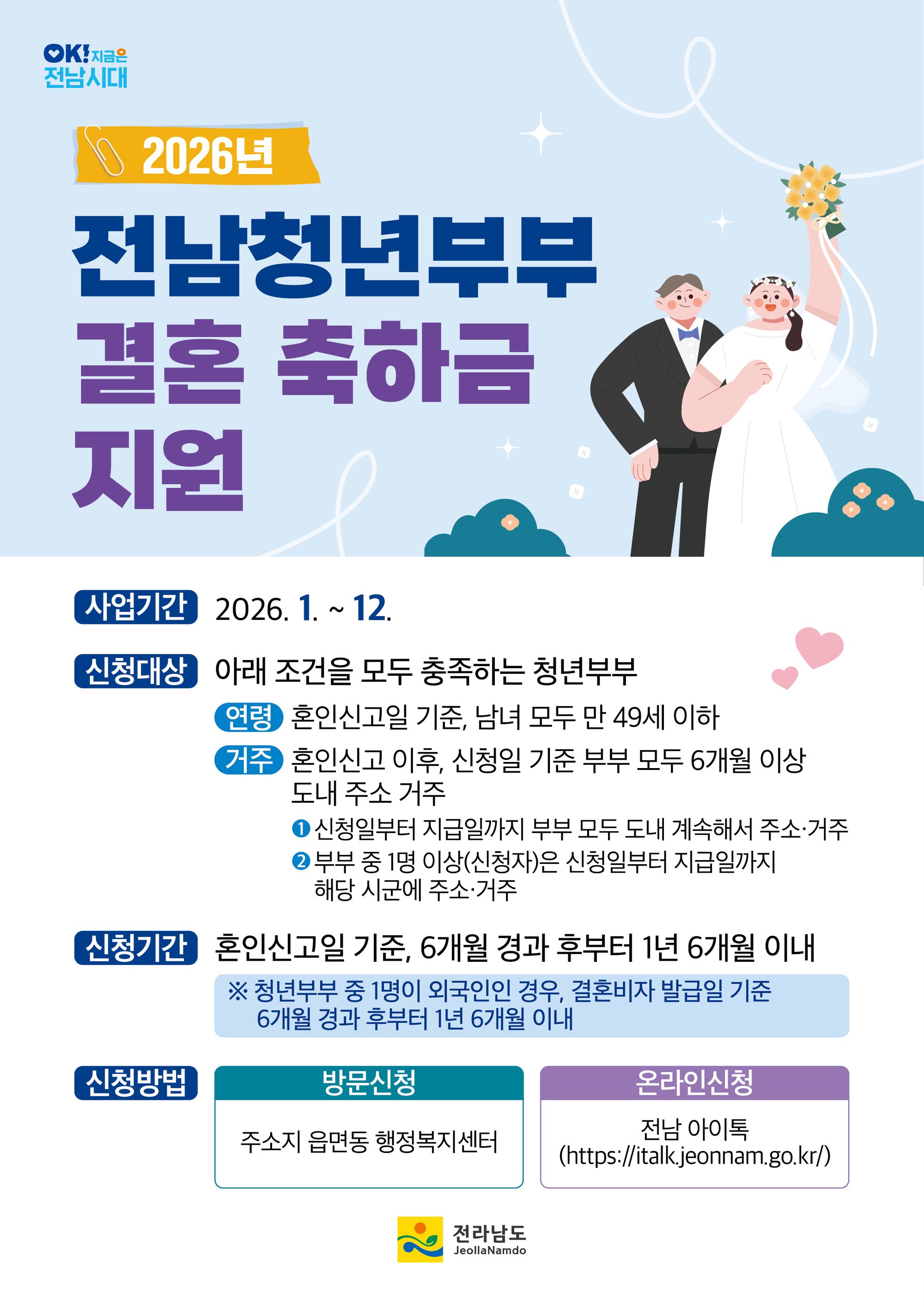전라남도가 청년부부의 결혼 초기 경제적 부담을 덜고