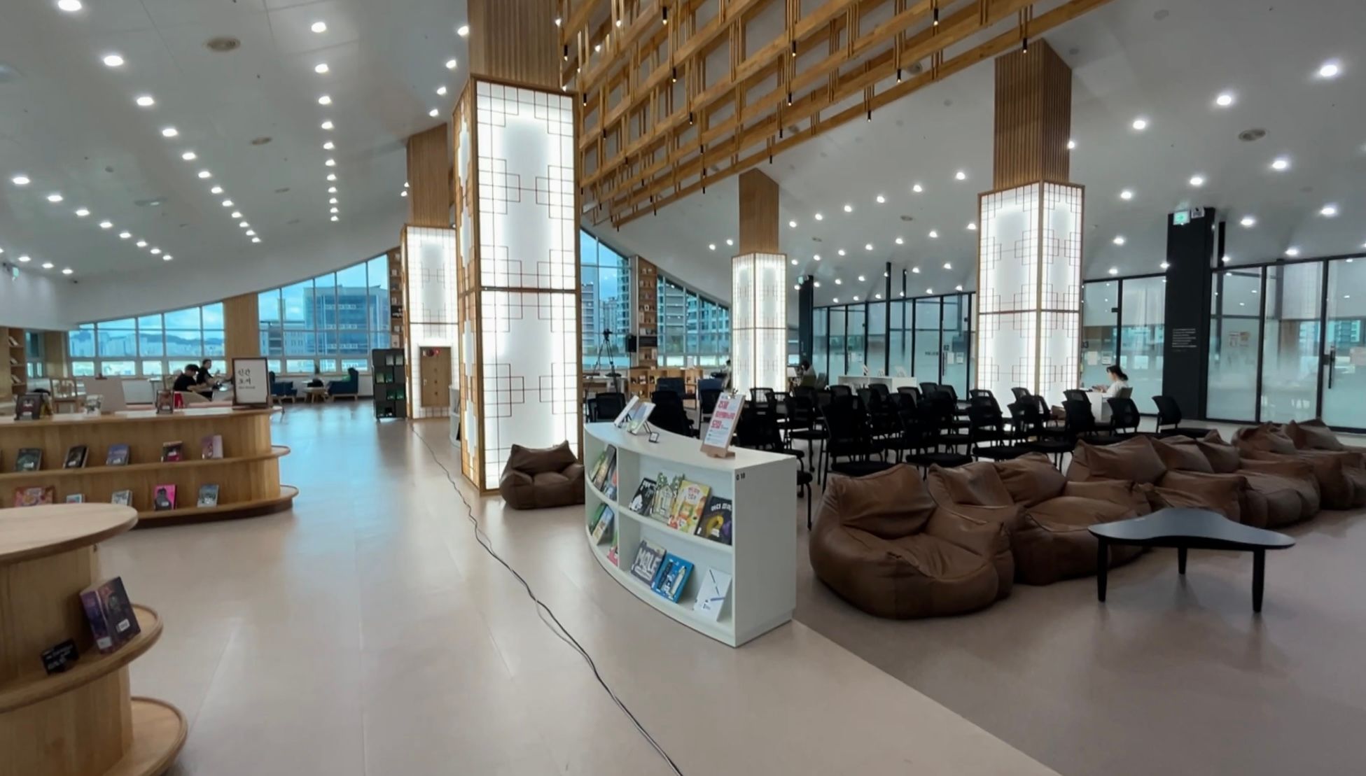 넓은 북카페를 연상케 하는 이곳은, 책과 사람이 자연스럽게 어우러지는 쉼과 문화의 공간이에요.