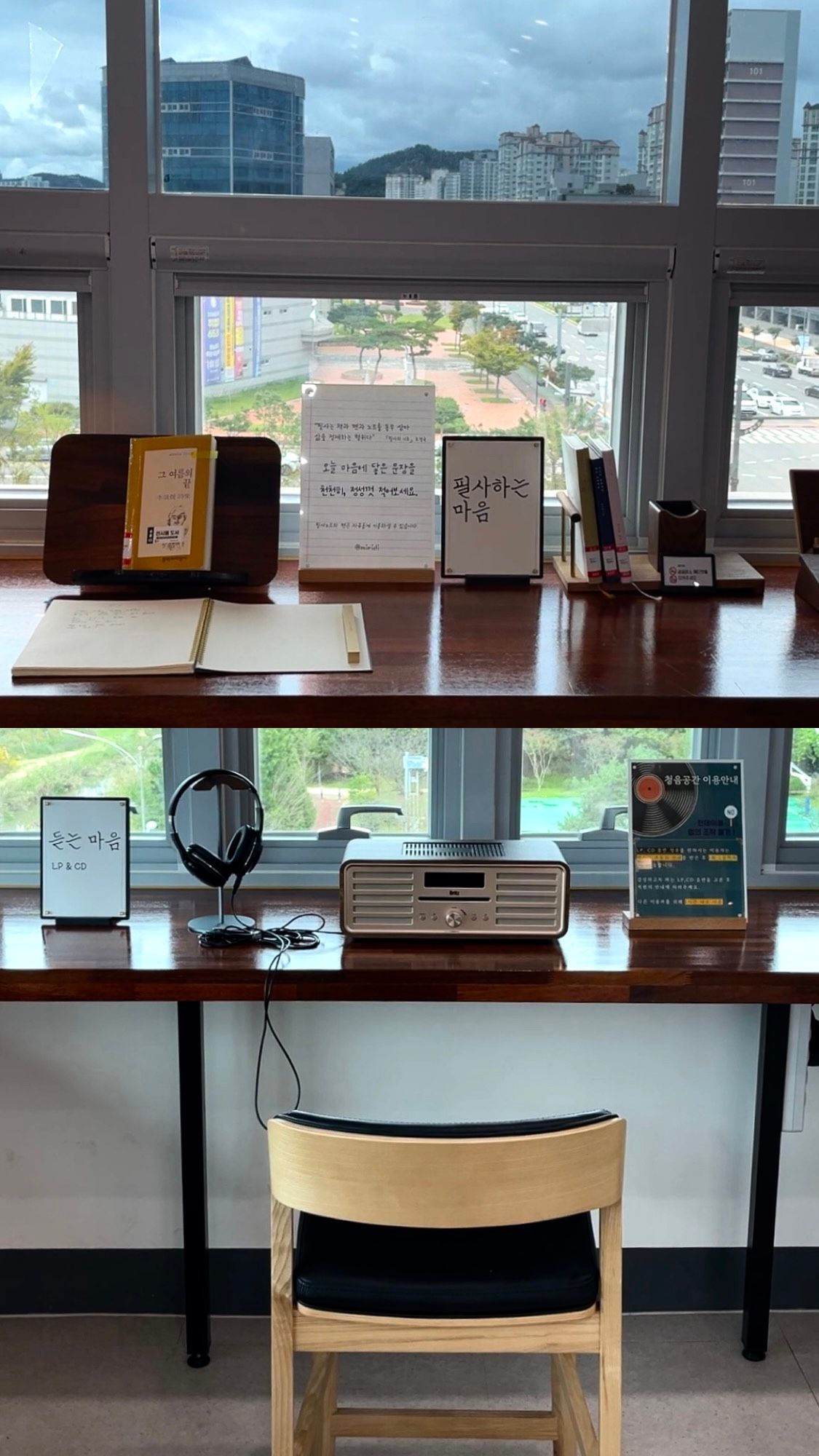 이곳에서는 단순히 독서뿐 아니라, 음악을 들으며 마음을 가다듬는 청음 공간과 좋아하는 문장을 따라 쓰며 생각을 정리할 수 있는 필사 공간도 함께 마련되어 있습니다.