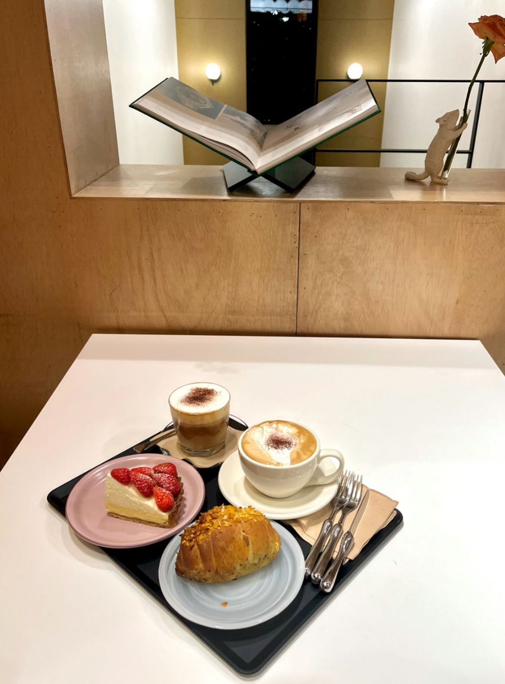 시그니처 메뉴인 수제 얼그레이크림을 토핑한 헤이즐럿 라떼와 갈릭버터가 들어간 단짠단짠 조합의 바질갈릭소금빵을 먹었어요. 😋 통통한 소금빵, 독특하고 먹어본 것 중에 최고였어요! 🥖