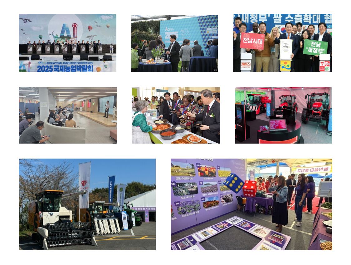 박람회의 주요 프로그램으로는 AI 기반 첨단농업기술 전시, 미래 농업 시연, 글로벌 수출 상담회 등이 있습니다.